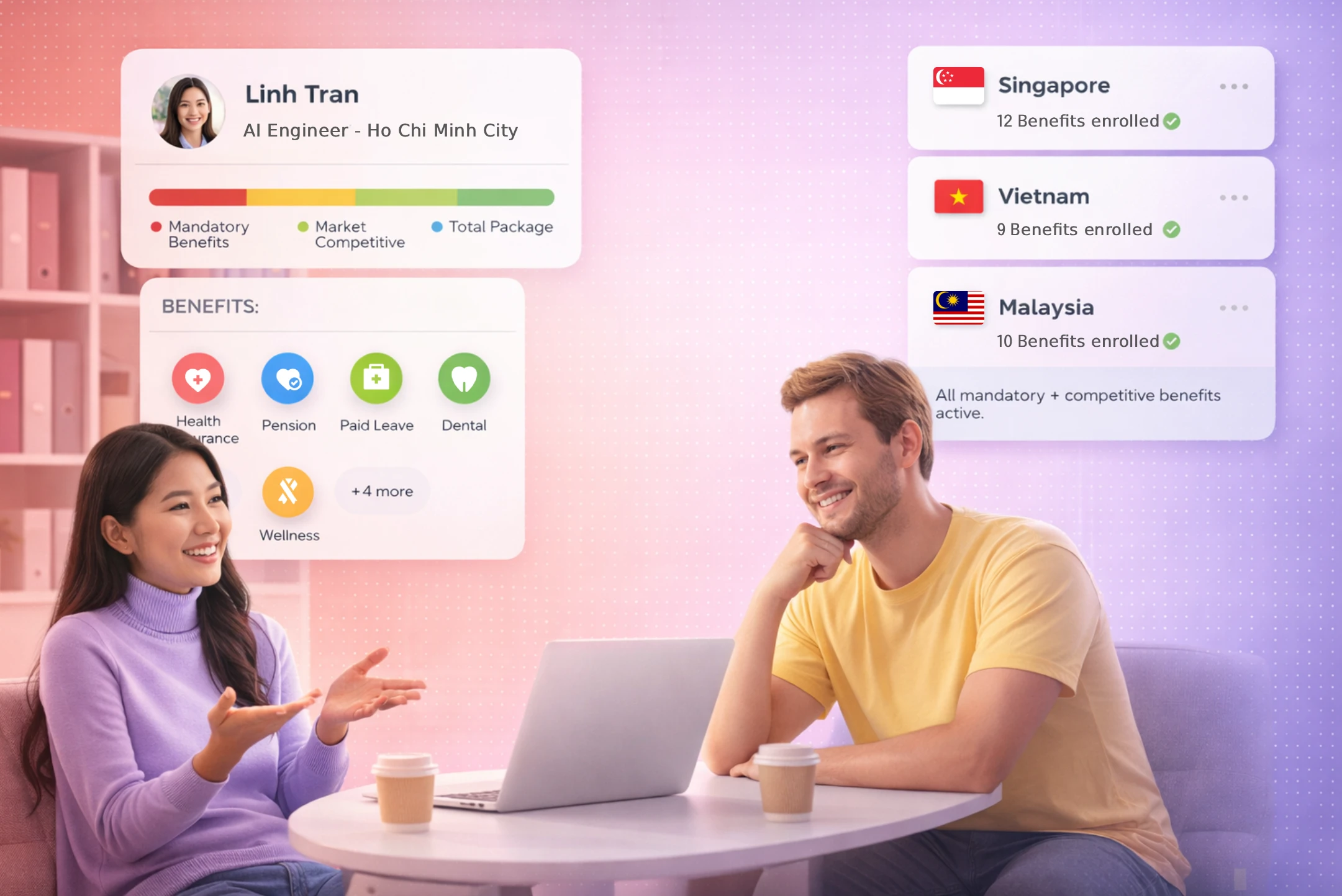 Cùng nhau, chúng tôi thiết kế gói phúc lợi đáp ứng yêu cầu pháp lý và cạnh tranh tại từng thị trường.